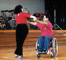 | ステージには、「車椅子ダンス」「難聴者の太鼓グループ」など、共感をしてくれる障害者団体も、積極的に出演。 皆、日頃の練習の成果を発表する場として、大いに楽しんでいるだけではなく、観客の皆さんとも交流をはかり、会場中がバリアフリーの心で満たしてくれています。 |