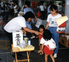 ミュージシャンズ・カーニバルなどのコンサートや、街頭で募金活動を展開。 BOROのメッセージを心に刻みながら、真心の募金を箱の中へ。 また、“AYAKA基金”の口座には、今に至るまで絶えることなく、善意の募金が振込まれ続けています。 これらの真心が、やがて大きな力となることを信じ、訴え続けています。 |